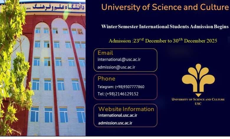 آغاز پذیرش دانشجویان بین المللی دانشگاه علم و فرهنگ برای نیمسال دوم سال 1404-1405