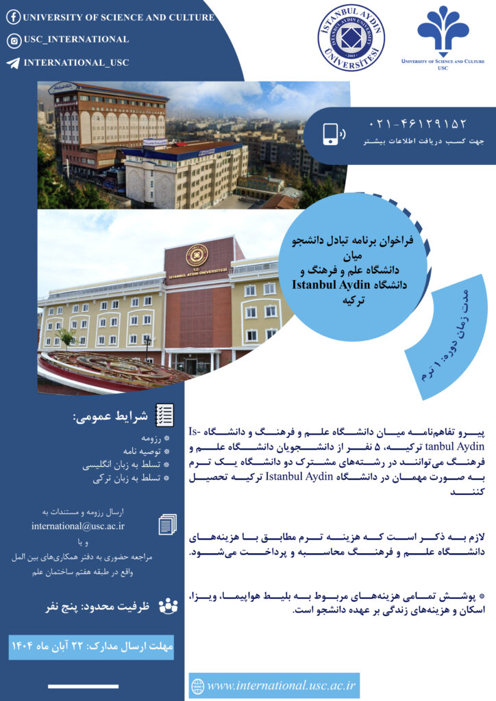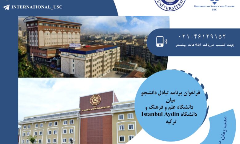 فراخوان برنامه تبادل دانشجویان دانشگاه علم و فرهنگ و دانشگاه Istanbul Aydin ترکیه