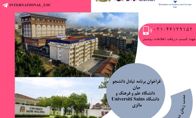 فراخوان برنامه تبادل دانشجویان دانشگاه علم و فرهنگ و دانشگاه University Sains Malaysia مالزی